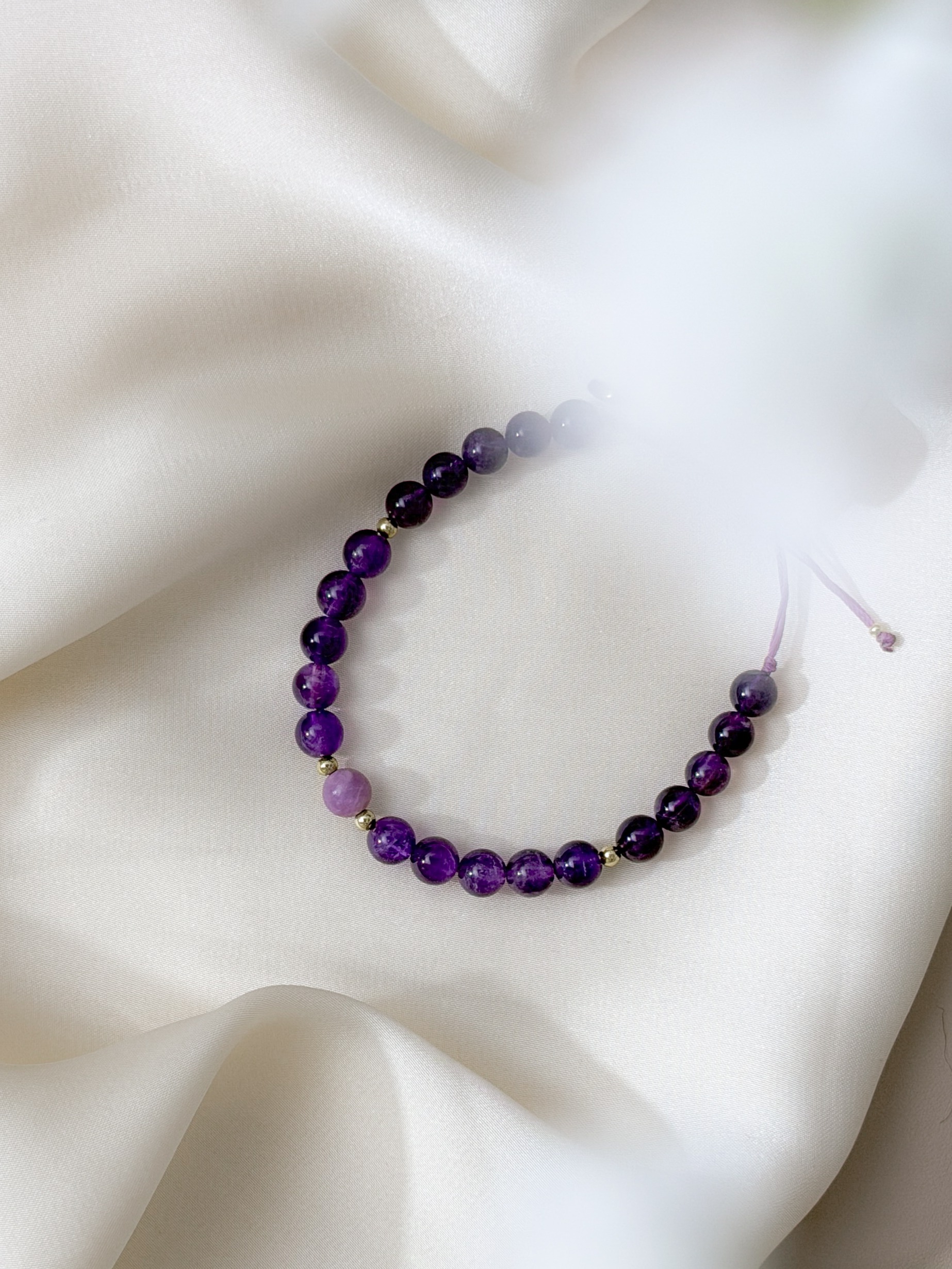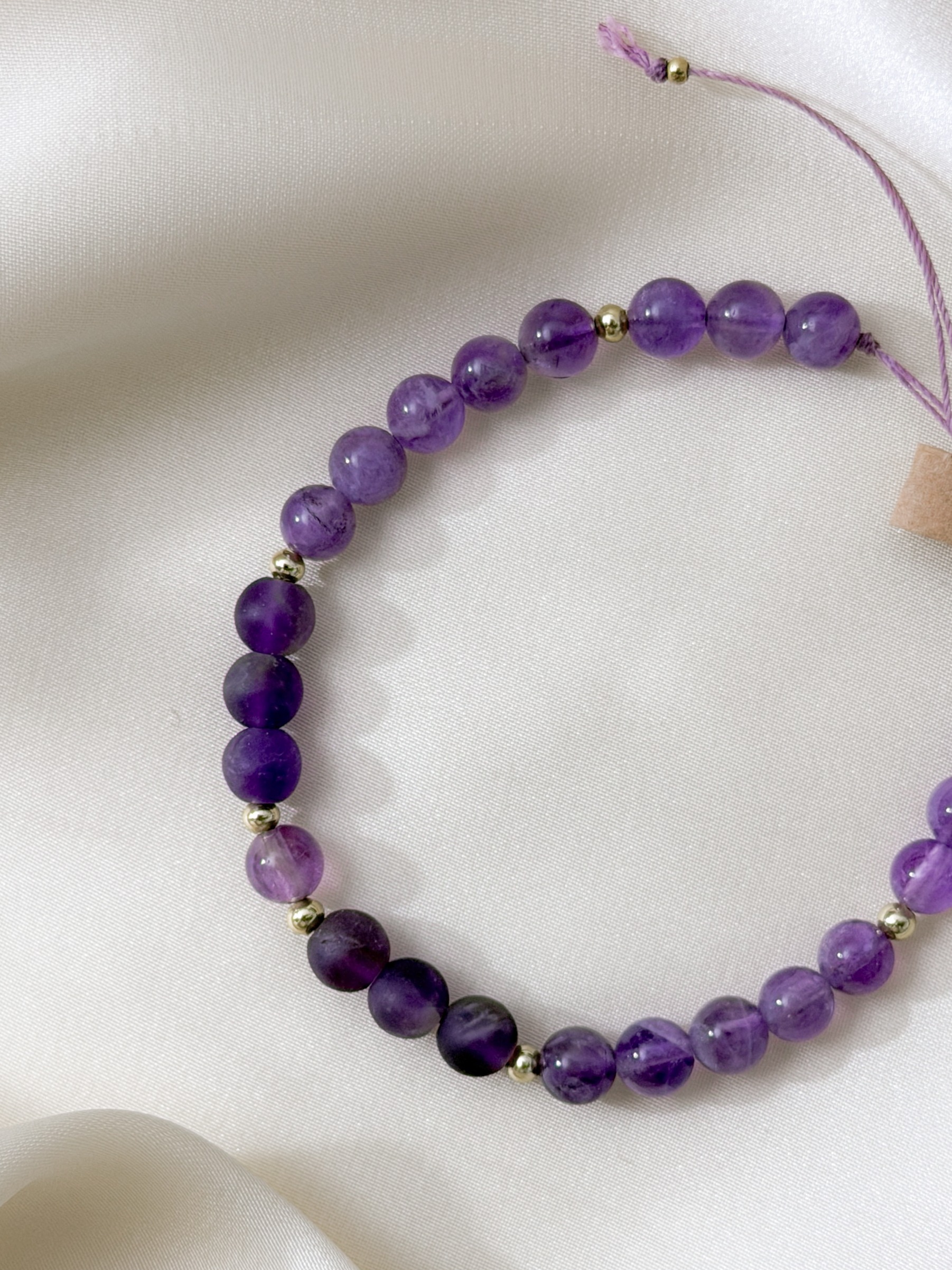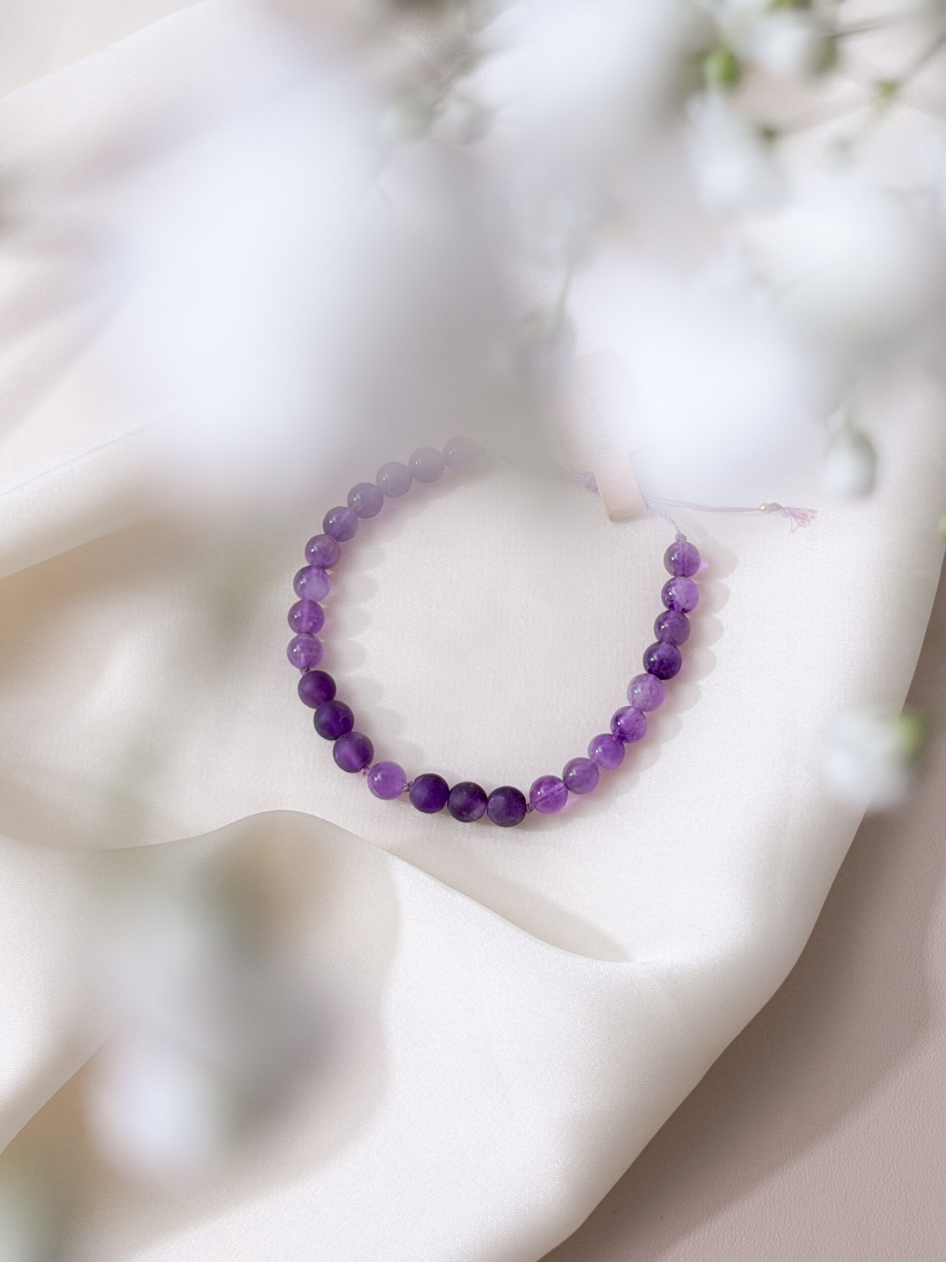 Der Amethyst wirkt wie eine liebevolle Begleiterin in Zeiten der Transformation. Er hilft dir, Altes loszulassen und neue Wege mit Klarheit und innerer Ruhe zu betreten. Seine beruhigende Energie unterstützt dich dabei, Gedanken zu ordnen, Stress zu lösen und deine Intuition zu stärken. Der Amethyst verbindet dich mit deinem höheren Selbst – er bringt Licht ins Dunkel und Klarheit in das, was sich verändern darf.