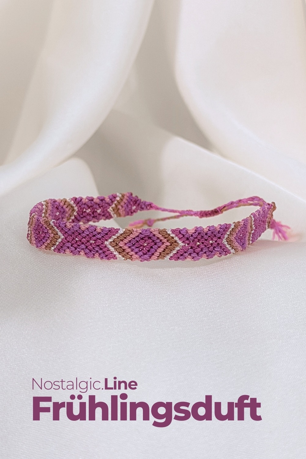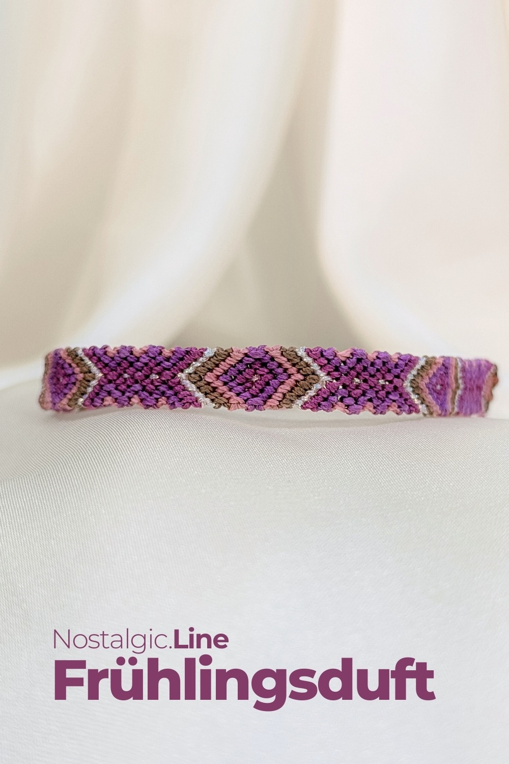 Ein Band wie der Moment, in dem der Frühling zum ersten Mal spürbar wird. Die ersten Vögel singen ihr Lied, die Knospen beginnen zu wachsen, und in der Luft liegt ein leiser Neubeginn. Die warmen Rosatöne, das sanfte Beige und das erdige Braun tragen diese leichte, stille Vorfreude in sich – ein Hauch von Blüte, ein Duft, der ankommt, bevor man ihn greifen kann. „Frühlingsduft“ fühlt sich leicht und erdig zugleich an.