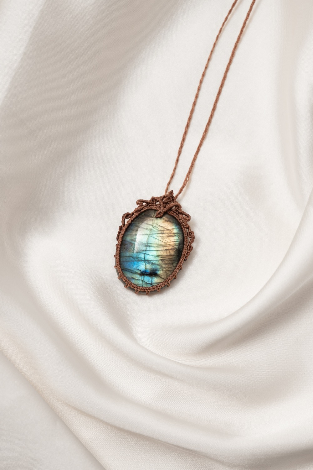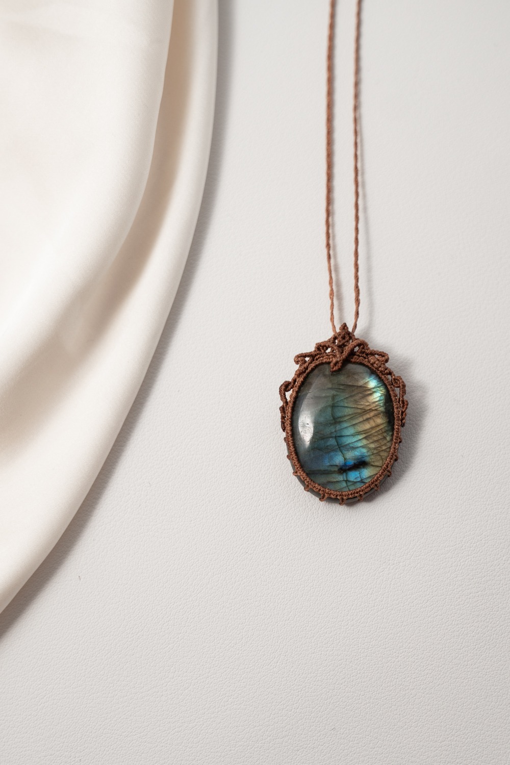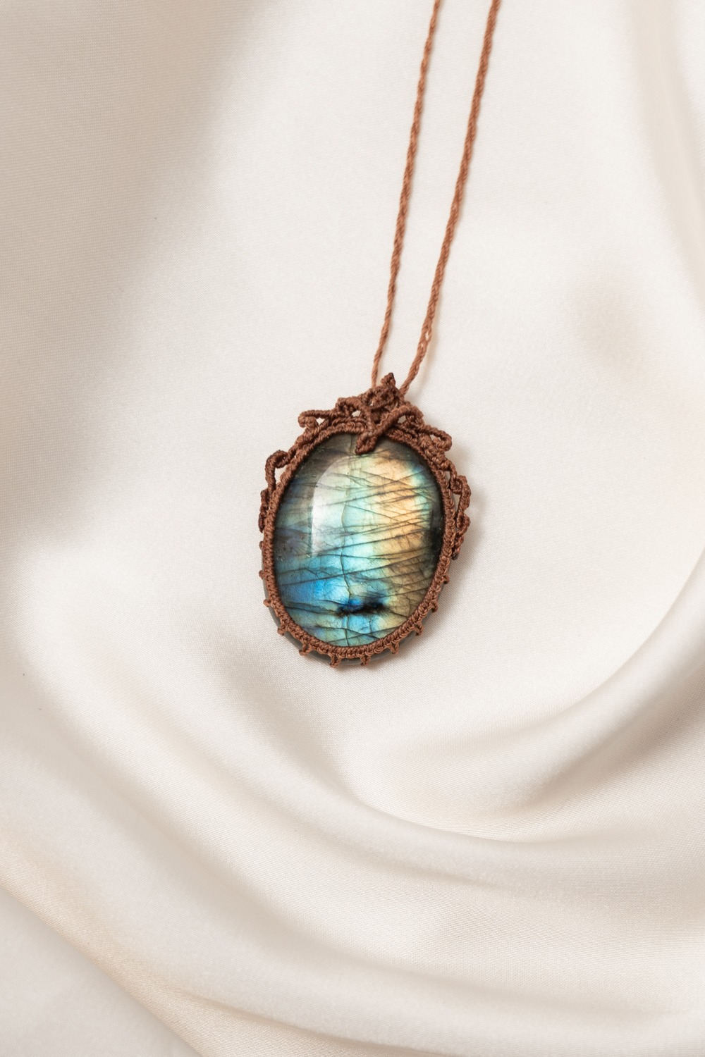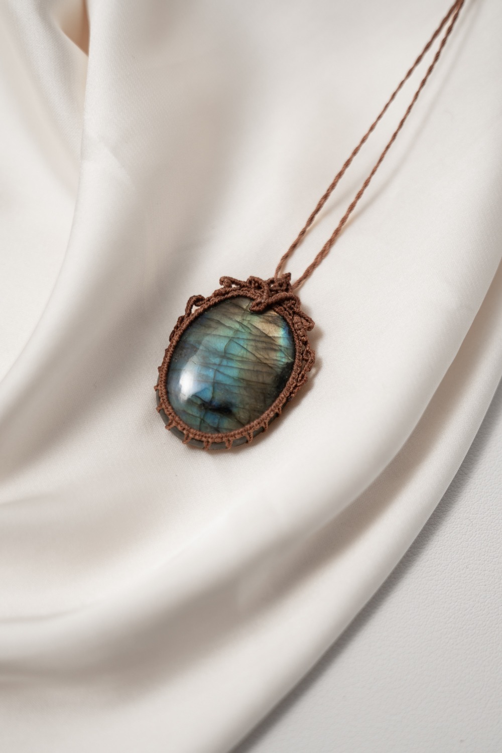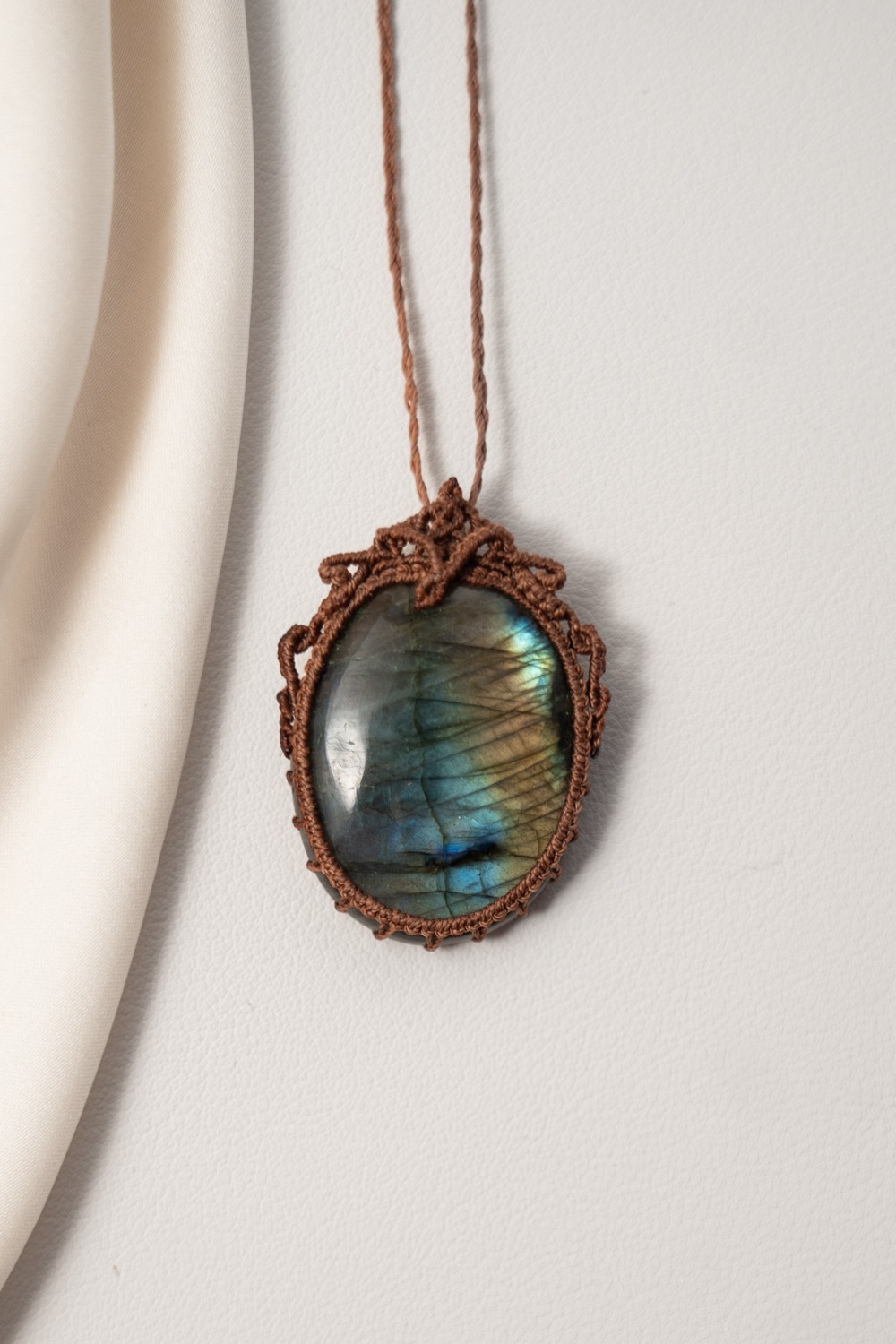 • Größe Labradorit mit Makramee 41 x 30 mm