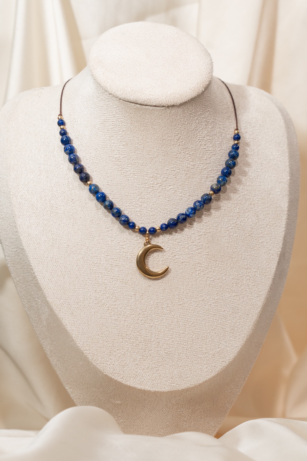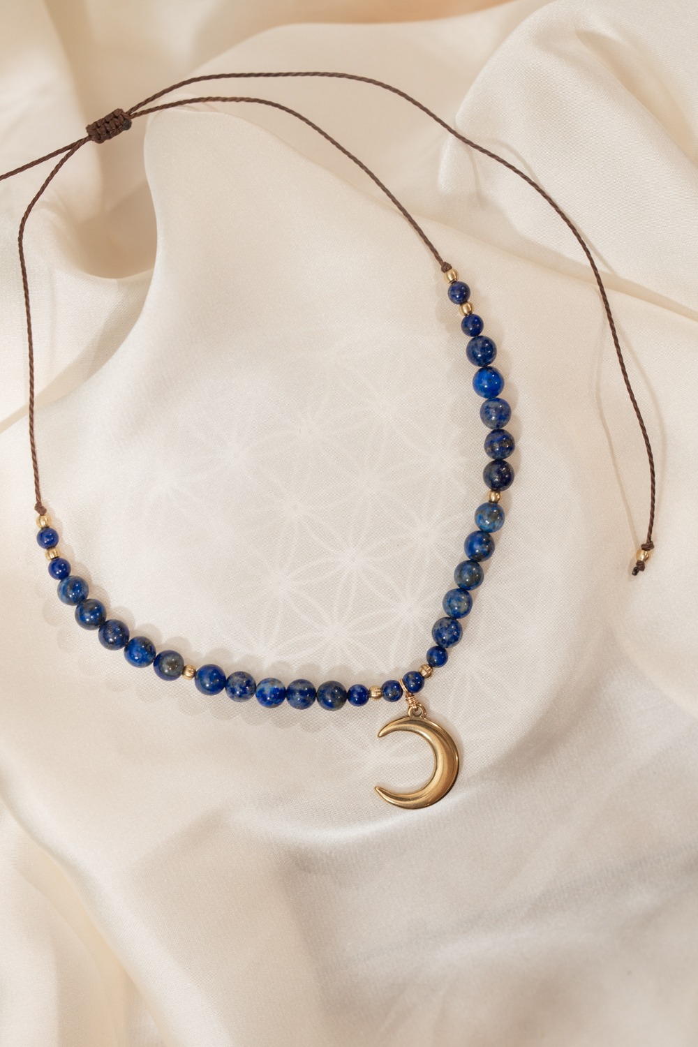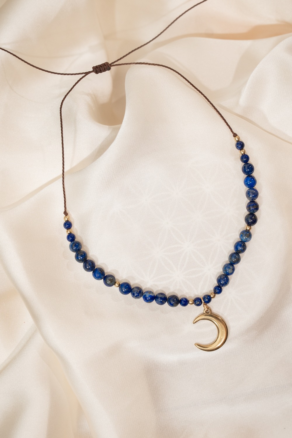 Lapislazuli ist ein tiefblaues Gestein, das vor allem aus den Mineralen Lazurit, Calcit und Pyrit besteht. Besonders geschätzt wird er für seine goldenen Pyrit-Einschlüsse, die wie Sterne am Nachthimmel funkeln.Schon im alten Ägypten galt er als „Stein des Himmels“. Er wurde zu Amuletten, Siegeln und Schmuck verarbeitet und war Symbol für Macht, spirituelles Wissen und innere Klarheit. In der Renaissance wurde er gemahlen und als Ultramarin das teuerste Pigment der Malerei – ein Symbol für Tiefe und Ewigkeit. Bis heute gilt Lapislazuli als Stein der Weisheit, der Wahrheit und der inneren Freiheit.
