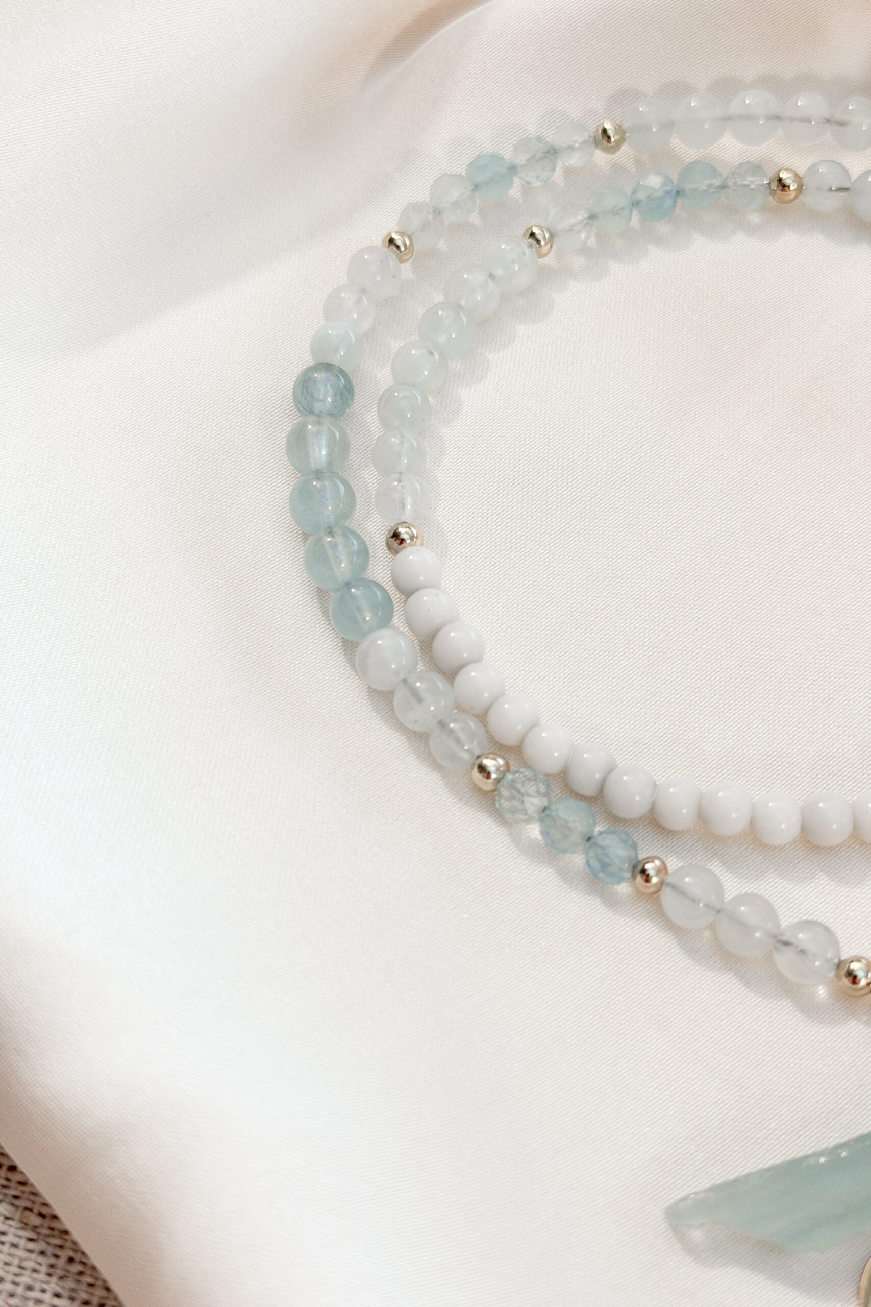 Meerweh steht für Weite, Bewegung und dieses leise Ziehen Richtung Meer. Die Kette kombiniert Aquamarin und Friedensachat in kühlen Blautönen und wird durch wechselbare Charms ergänzt. Als Teil der YOUR.Circle ist die Kette flexibel gedacht: Die Charms lassen sich austauschen oder einzeln tragen – je nach Stimmung, Tag oder Gefühl. Schlicht. Wandelbar. Alltagstauglich.