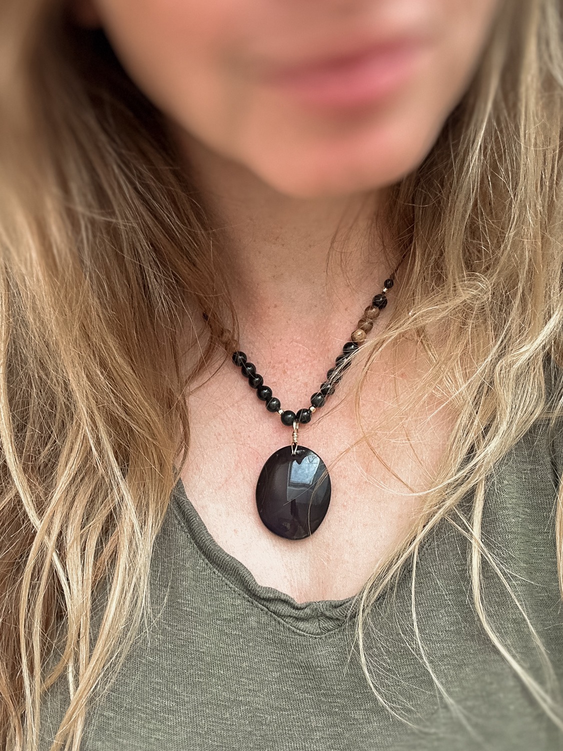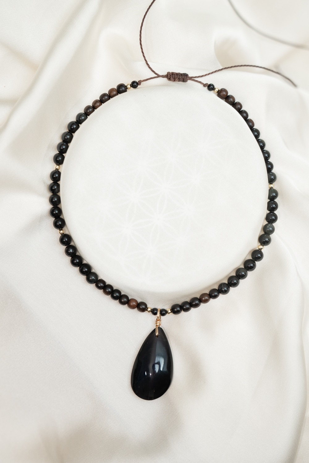 Obsidian ist ein vulkanisches Gesteinsglas, das durch die rasche Abkühlung von Lava entsteht. Seine glatte, tiefschwarze Oberfläche war schon in der Steinzeit begehrt – er wurde für Werkzeuge, Waffen und Schmuck verwendet.In alten Kulturen galt er als magischer Spiegelstein, mit dem man in die eigene Seele blicken konnte. Schaman:innen nutzten ihn zur Transformation, Reinigung und als Schutzstein gegen negative Einflüsse. Noch heute gilt Obsidian als starker Begleiter für alle, die sich mutig mit ihrer inneren Wahrheit auseinandersetzen möchten.