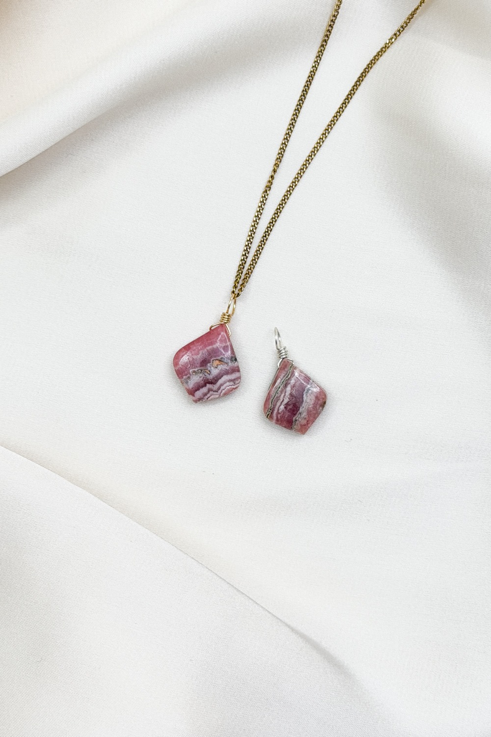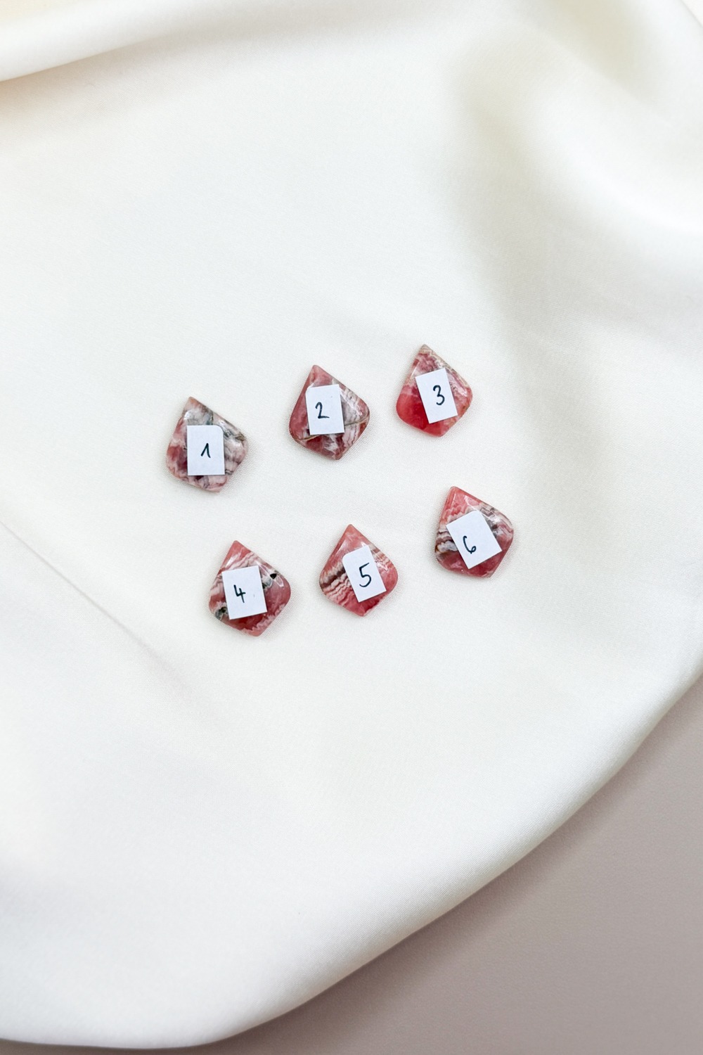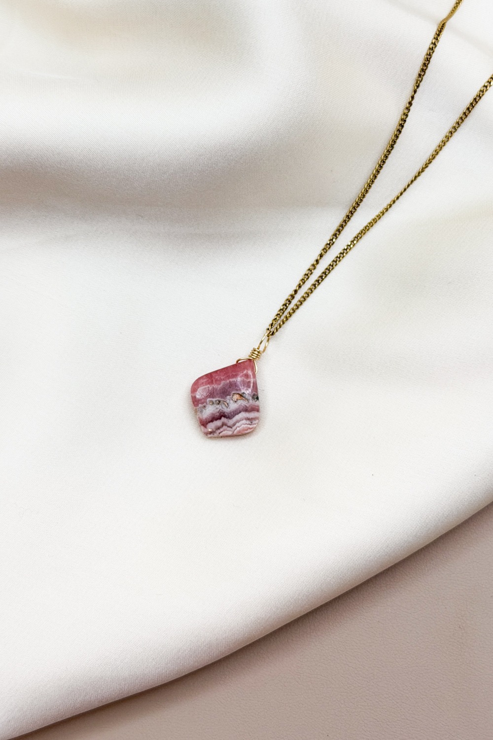 Rhodochrosit ist ein manganhaltiges Karbonatmineral mit rosa bis rotbrauner Farbe. Schon die Inka verehrten ihn als heiligen Stein des Herzens. Sein Name stammt aus dem Griechischen: „rhodon“ = Rose, „chrosis“ = Farbe. Rhodochrosit wird mit dem Loslassen alter Muster und dem Zugang zu verborgenen Emotionen assoziiert. In der Steinheilkunde gilt er als stark aktivierender Begleiter für Mut, Lebenskraft und Selbstliebe.
