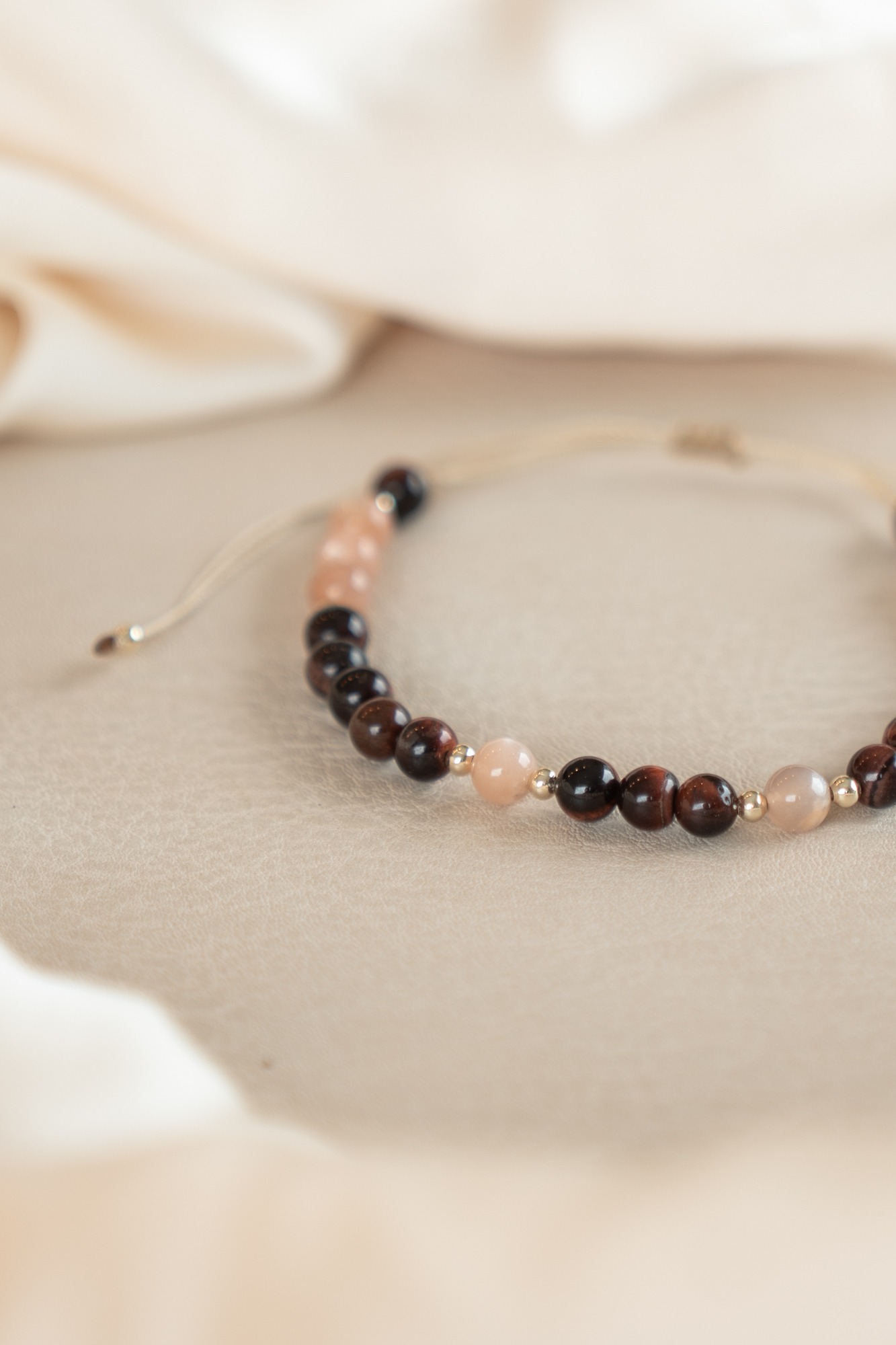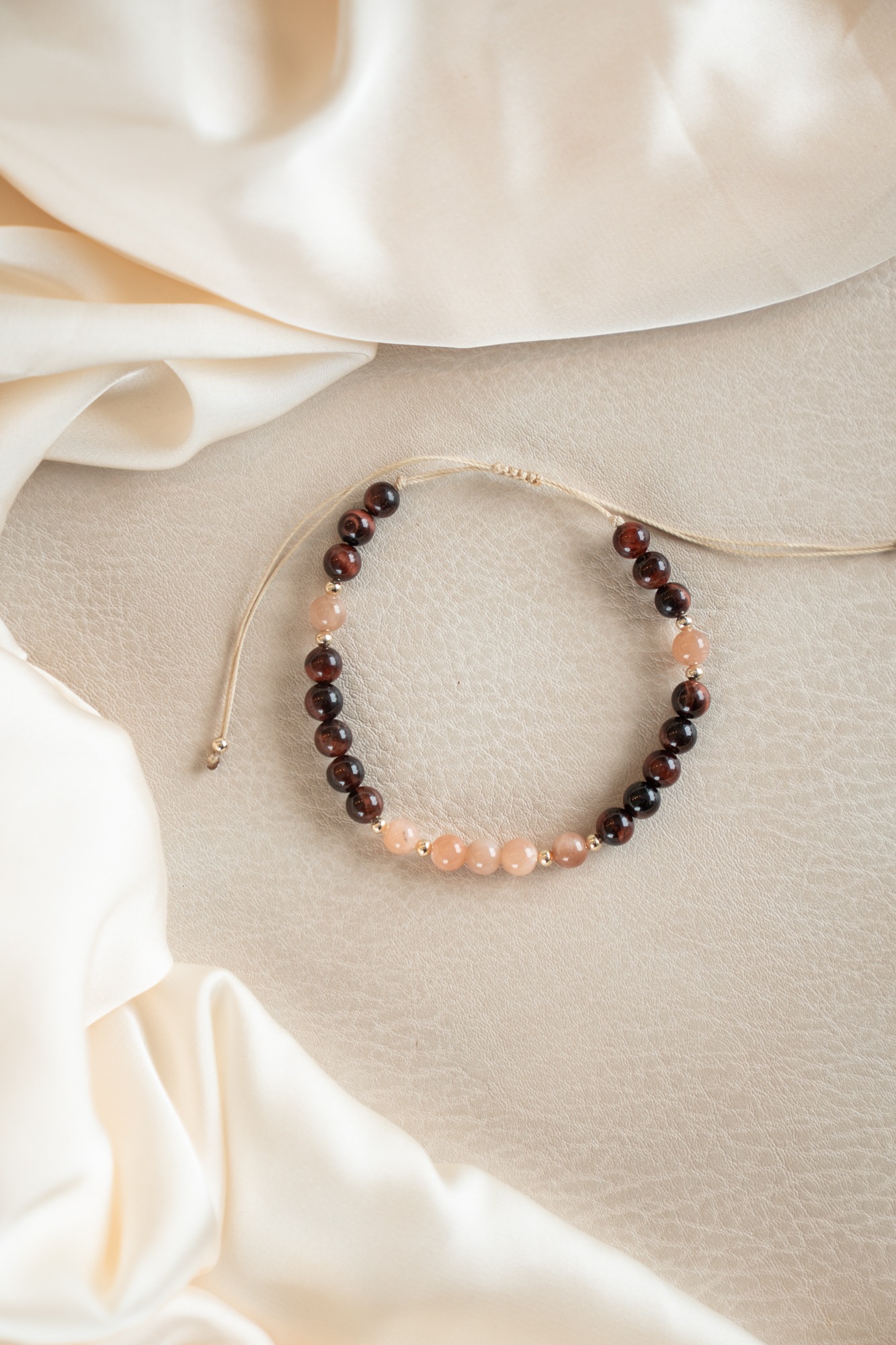 SelfLOVE. Tigerauge Rot und Rosa Mondstein • Armband