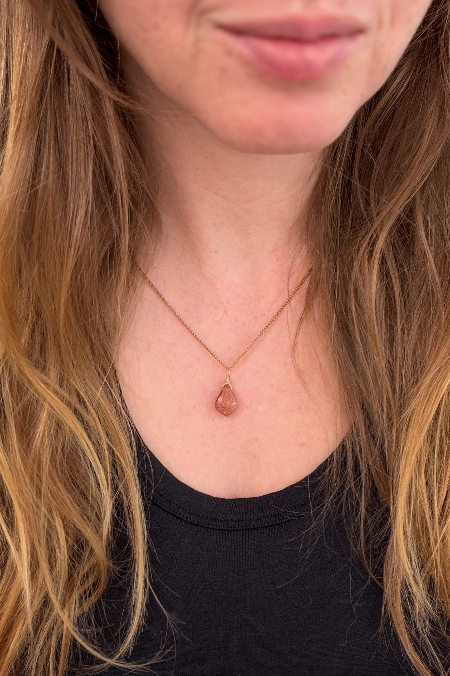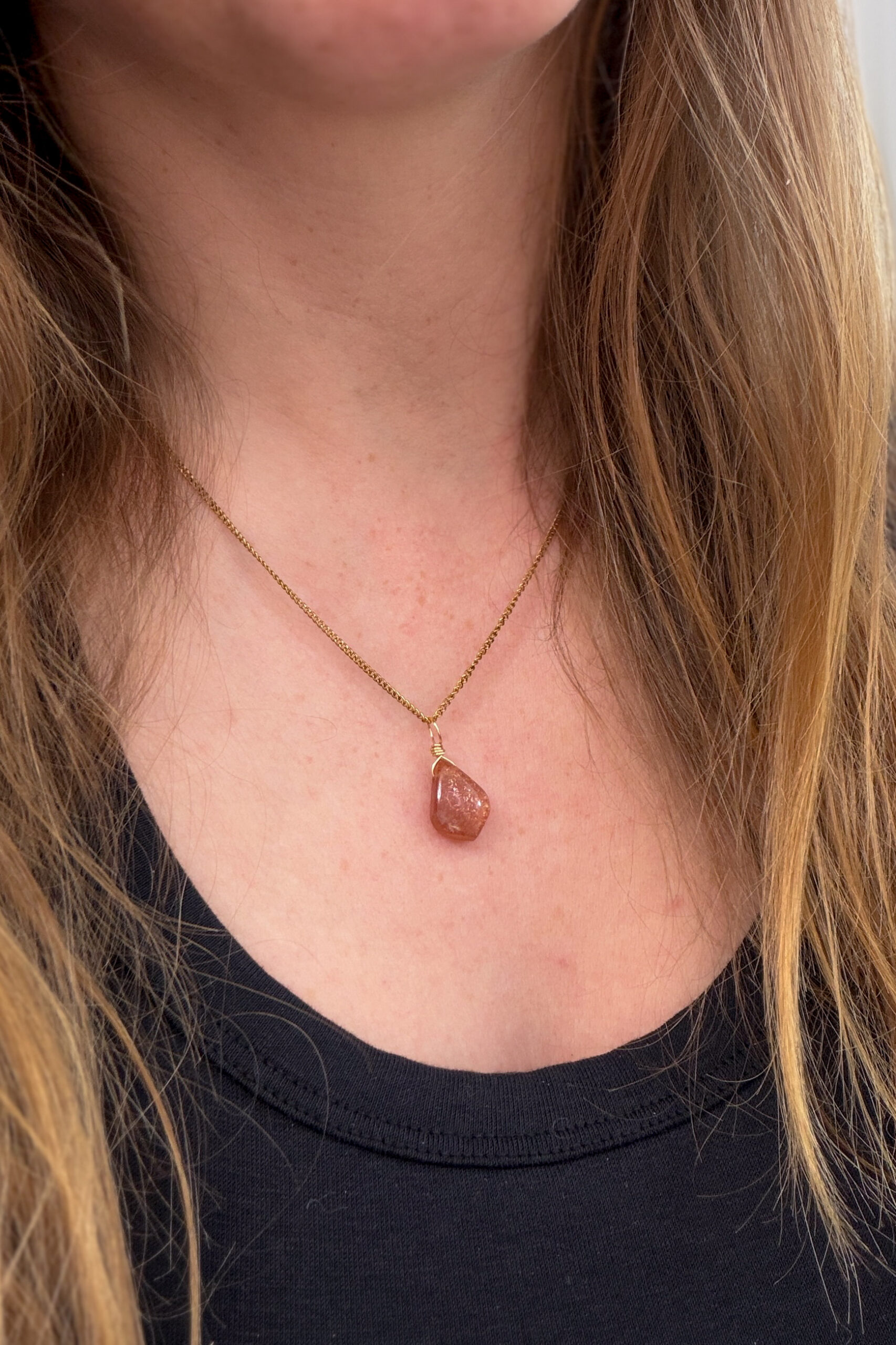 Jeder Sonnenstein Kettenanhänger ist ein natürliches Unikat und wird von Hand gefasst. Schlicht gehalten, damit die Ausstrahlung des Steins für sich wirken kann – als tägliche Erinnerung an dein inneres Licht.