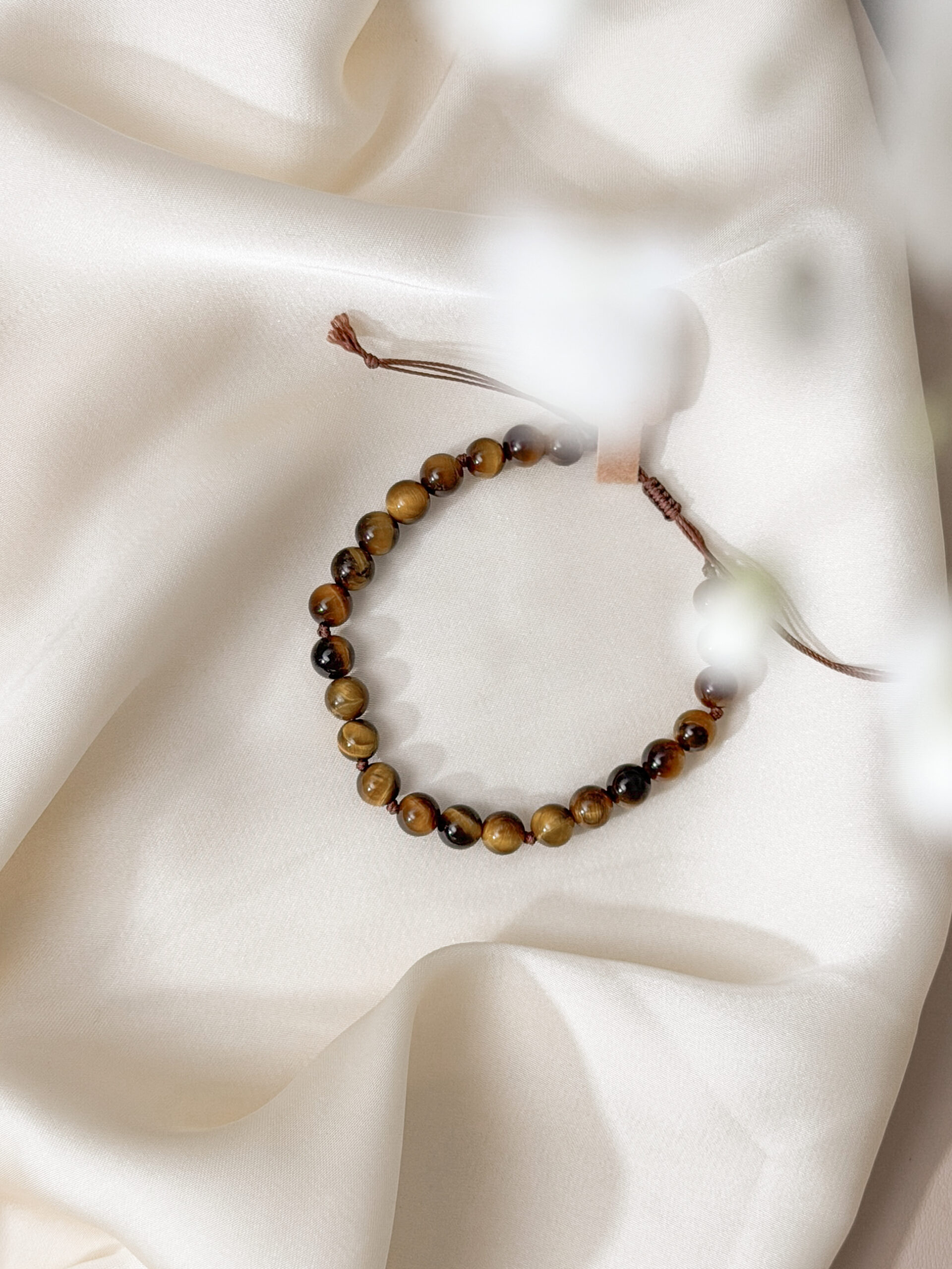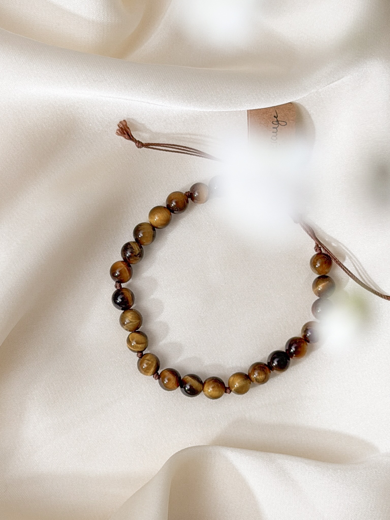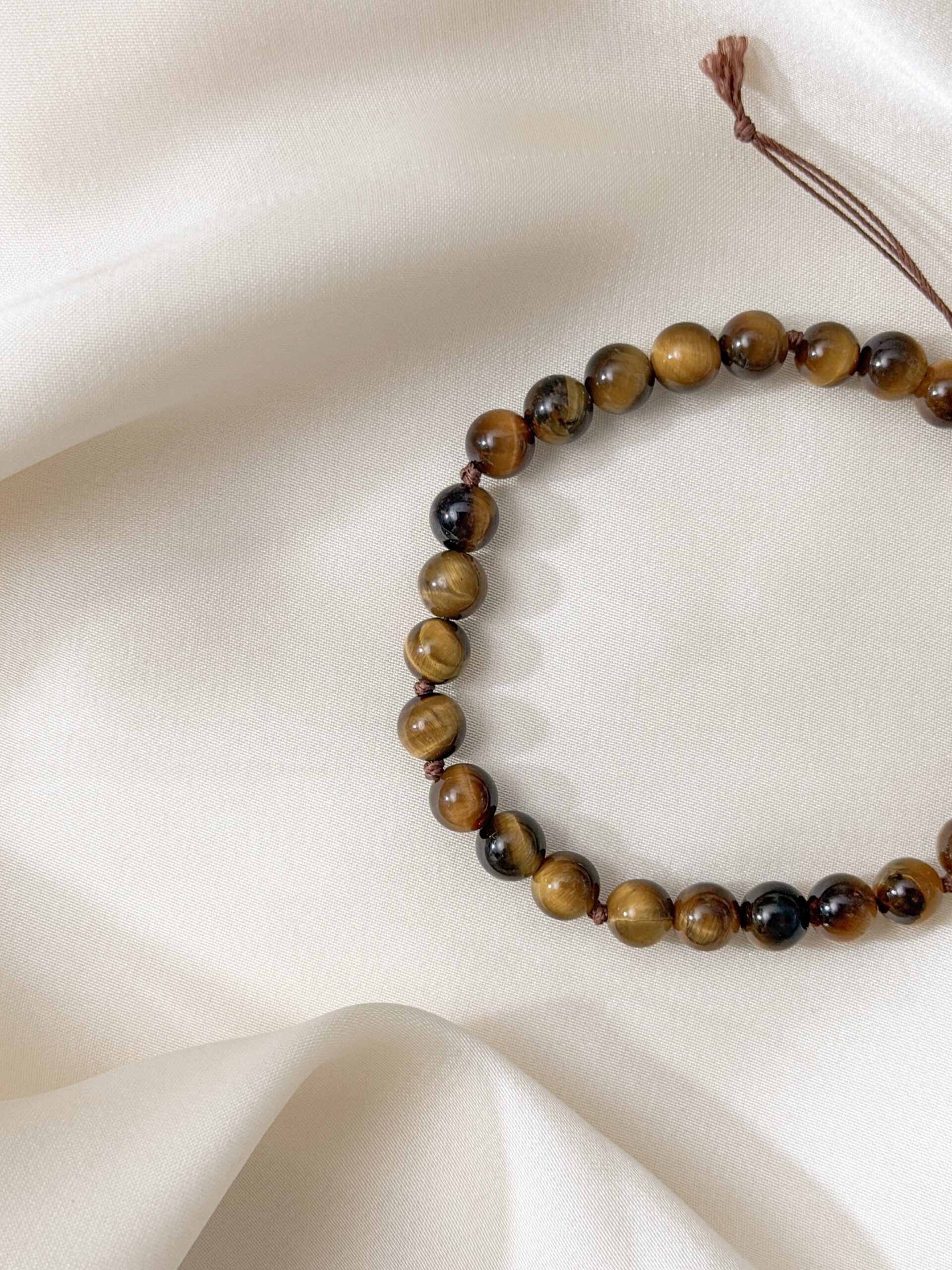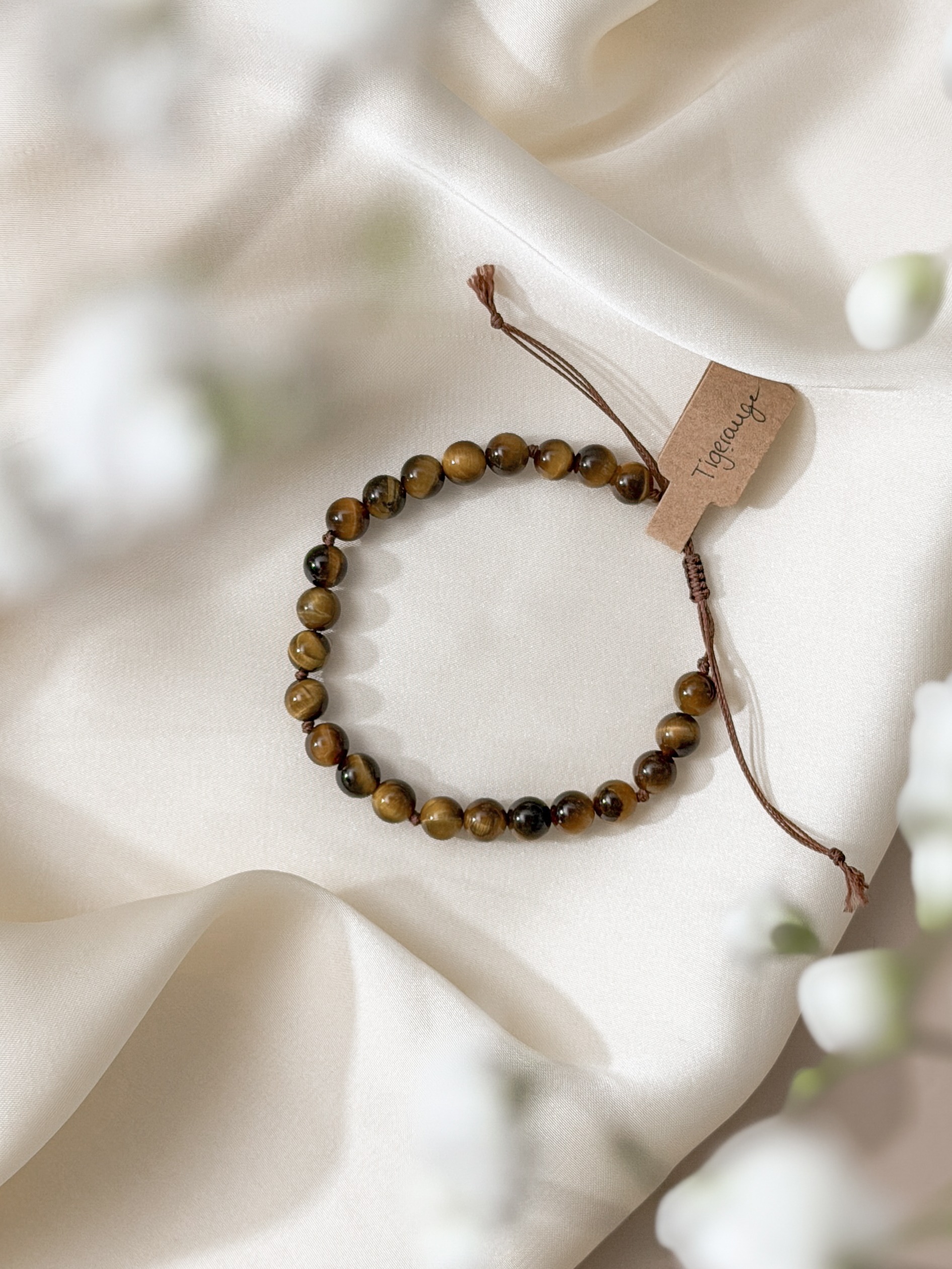 Tigerauge ist eine goldbraune, faserige Variante des Quarzes, die durch Verwitterung von Krokydolith entsteht. Die schimmernde Lichtreflexion, auch „Chatoyance“ genannt, erinnert an das Auge einer Raubkatze und verleiht dem Stein seinen Namen. Schon in der Antike galt Tigerauge als Schutzstein gegen Flüche und den “bösen Blick”. In Afrika, Asien und im alten Rom trug man ihn als Talisman für Mut, Kraft und Weitblick. Heute ist er besonders in Phasen des Umbruchs und der Selbstfindung beliebt – als Stein, der dich erdet und stärkt.