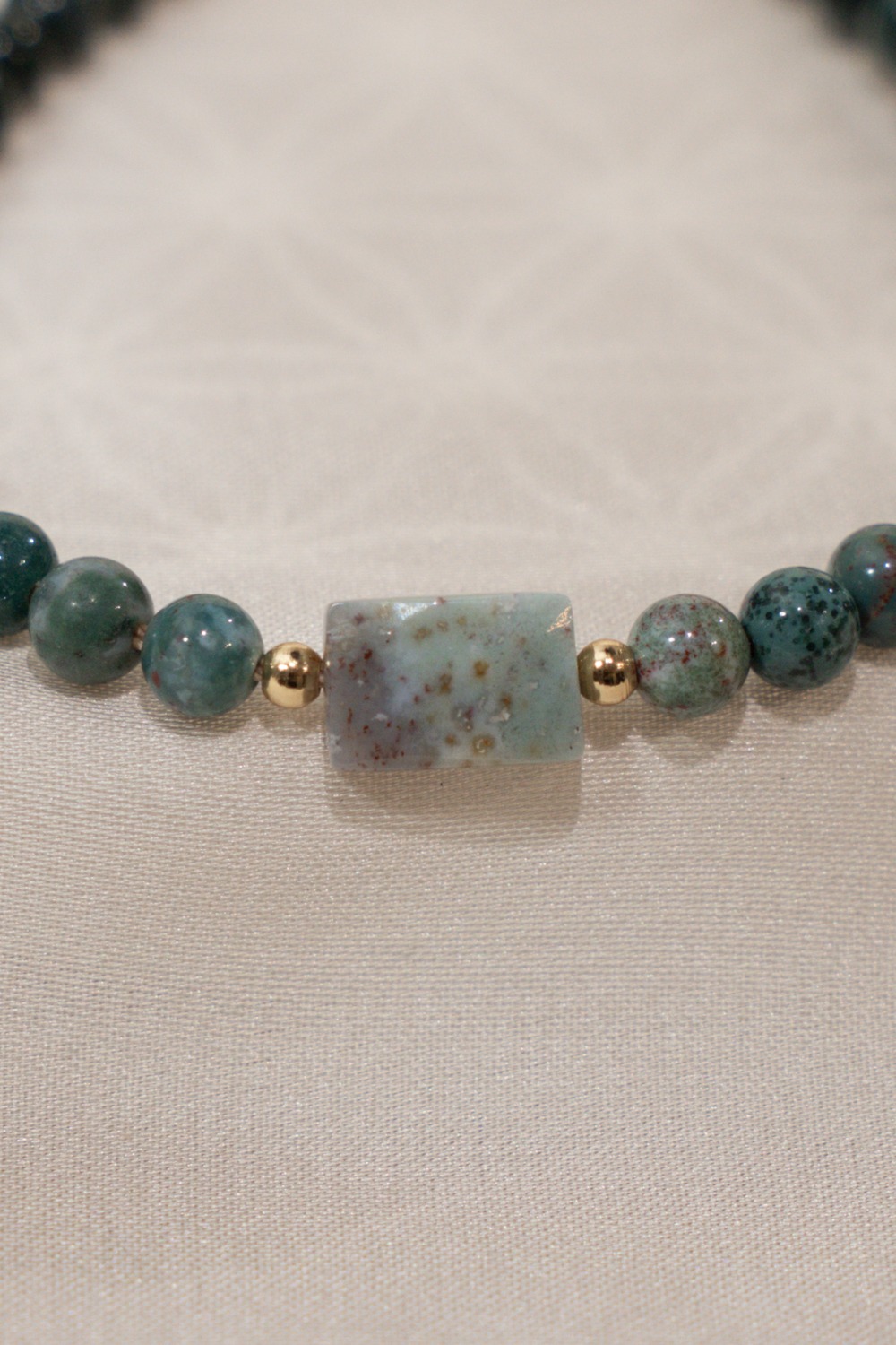 Der Fancy Heliotrop ist die zarte Schwester des klassischen Blutsteins: weniger kämpferisch, aber ebenso schützend. Seine hellen Töne – von sanftem Grau bis Weiß – erinnern an Nebel am Morgen, der sich langsam lichtet. Er begleitet dich, wenn du Klarheit suchst, ohne dich selbst unter Druck zu setzen. Ein Stein für Zeiten der Neuordnung, des inneren Rückzugs und der leisen Stärke.